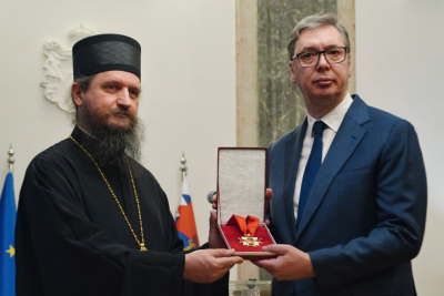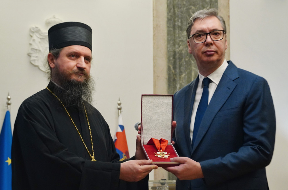 Predsednik Srbije Aleksandar Vučić sastao se u Beogradu sa episkopom bihaćko-petrovačkim Sergijem koji mu je uručio Orden Novomučenika bihaćko-petrovačkih za pokazano dobročinstvo i veliku ljubav prema toj eparhiji i manastiru Rmanj.