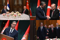 "Prethodno smo najavili da ćemo učestvovati na Expo 2027, čiji će domaćin biti Srbija. Smatramo da je ovaj događaj važan jer će doprineti kulturnom odnosu naših zemalja. Zadovoljni smo velikim brojem turskih investicija u Srbiji. Godine 2015. oko 100 turskih kompanija radilo je u Srbiji. Danas je taj broj premašio 1.500, sa ukupnim iznosom do 30 miliona dolara", kazao je turski predsednik.
