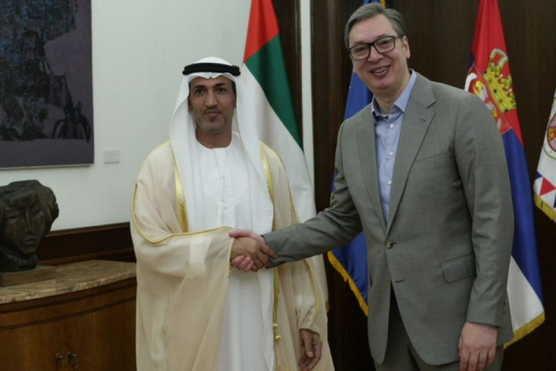 Takođe, iskoristio sam priliku da ponovo ukažem na poseban značaj koji Srbija pridaje partnerstvu i prijateljskim vezama sa UAE, uz posebnu zahvalnost šeiku Muhamedu ibn Zajedu koji je i lično doprineo našim neraskidivim bilateralnim i ekonomskim odnosima. Zamolio sam ministra Al Mazruija da šeiku prenese moje srdačne pozdrave uz uvek otvoren poziv da ponovo poseti Srbiju."