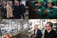 Predsednik Srbije Aleksandar Vučić, nakon što je posetio fabriku hemijske industrije Eliksir Prahovo kod Negotina, obilazi i radove na modernizaciji Luke Prahovo.