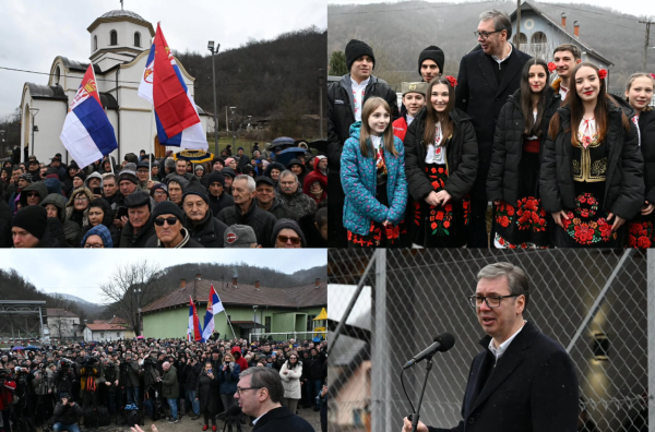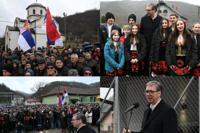 "Hvala vam na ovom dočeku. Hoću da vam kažem veliko hvala jer ste uvek čuvali otadžbinu, uvek brinuli o Srbiji. Hvala vam što ste sa toliko ljubavlju podizali ovaj hram, uprkos nedobijanju dozvole dugo vremena. Video sam neke stvari koje treba da se uradi ali to ćemo uraditi kad se poboljšaju vremenski uslovi", rekao je Vučić.