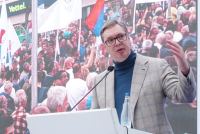 "Bili su sigurni da ćemo kao neki drugi pre 15-20 godina da spustimo glavu i kažemo: 'Da, veliki ste, jaki ste'. Mi smo rekli: 'Znamo koliko ste veliki i sa koliko problema možete da nas suočite', ali mi branimo najveću svetinju", rekao je Vučić i dodao: