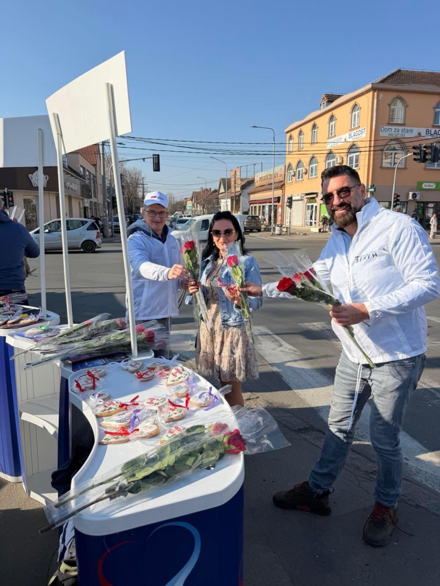 Istu sliku mogli smo da vidimo i na ulicama Obrenovca gde su damama podeljene ruže.