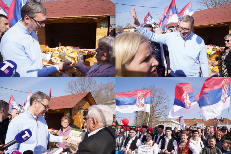 Predsednik Srbije Aleksandar Vučić posetio je danas selo Azanja kod Smederevske Palanke, gde obilazi štandove sa domaćinom proizvodima lokalnih proizvođača i razgovara sa meštanima.