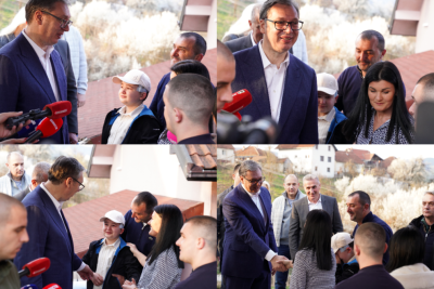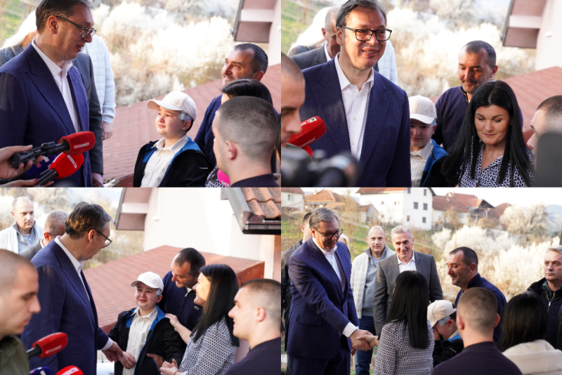 Vučić je danas malo pre 17 sati stigao u kuću porodice Knežević, koja ima troje dece.