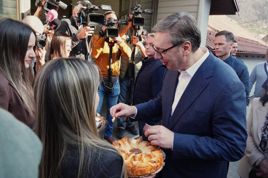 Vučiću su potom ponudili pogaču i rakiju, na šta je on kroz smeh rekao da "šljivu ne može danas".