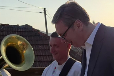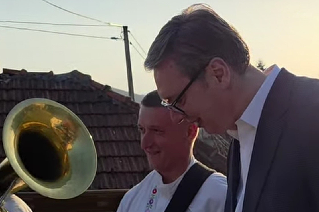 Predsednik Srbije Aleksandar Vučić razgovarao je sa meštanima sela Kotraža, a onda je kratko i zasvirao, što je prisutne iznenadilo.