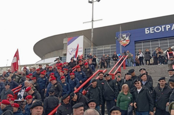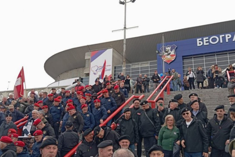 Ispred Beogradske arene u kojoj se danas održava veliki miting SNS su i naši veterani, pišu mediji.