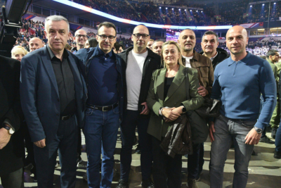 Predstavnici Srpske liste na skupu u Areni; Zajedno sa brojnim Srbima sa KiM došli da podrže Vučića FOTO