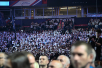 Predsednik SPS i ministar unutrašnjih poslova Ivica Dačić obraća se prisutnima na skupu SNS-a u "Beogradskoj areni."