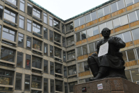 Ni reči o stradaloj studentkinji istorije umetnosti na ovom fakultetu, koja je preminula sinoć nakon što je pala sa 5. sprata zgrade.