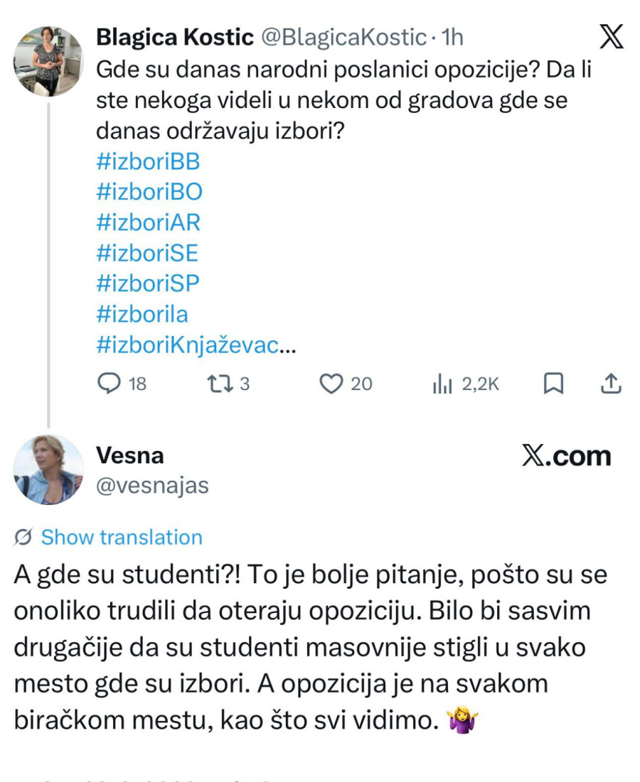 "Naravno da policija obezbeđuje privatnu kuću kad se blokaderi okupe ispred i daju sebi za pravo da upadaju ljudima u njihov privatni posed gde žive sa porodicama. Ko ste vi da upadate ljudima u njihove kuće? To ste radili u Kosjeriću, to ste radili u Mionici, sada to radite u Kuli... Kakva je ovo bezobalna bahatost, a N1 se čudi zašto policija ne dozvoljava rulji da upada ljudima u kuće. Interesantno", napisala je Brnabić na Iksu.