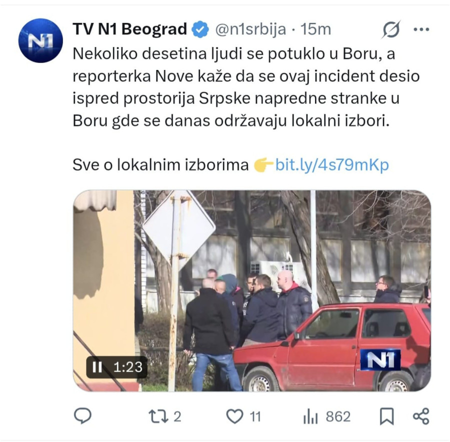"Kada na N1 vidite naslov 'Tuča u Boru' to je neoboriv dokaz da su blokaderi napali nekoga, jer da je kojim slučajem drugačije, odmah bi zakukali da je neko njih tukao. Dakle, benigno 'tuča' pokazuje da je, za N1, blokaderima sve dozvoljeno, kao što je i njima dozvoljeno da brutalno krše izbornu tišinu i u petak, i juče, i danas", istakla je Brnabić.