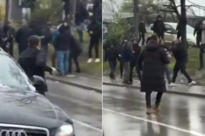 Kako je prikazano na video-snimku, ispred opštinskog odbora je došlo do tuče, te je muškarac sa pištoljem u ruci izleteo iz parkiranog "audija".