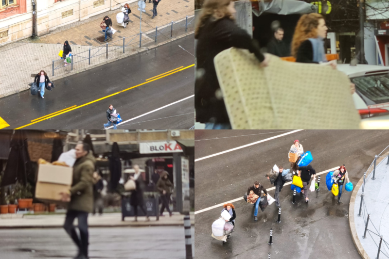 Kako se može videti na fotografijama i video snimcima, oni u plastičnim kesama, kutijama i gajbama iznose stvari koje su držali u zgradi Rektorata.