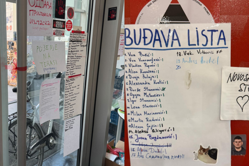 Blokaderi okačili "crnu listu studenata" na ulaz u Rektorat u Novom Sadu FOTO