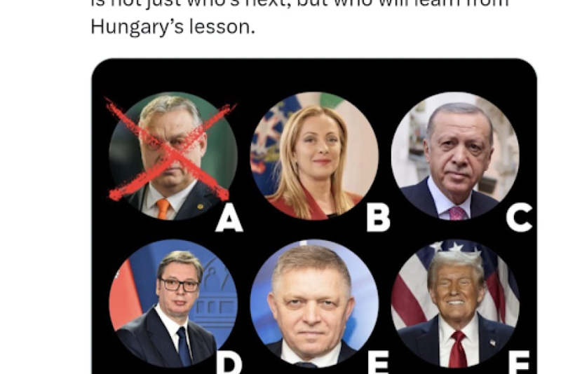 "A, B, C... možda zvuči kao igra, ali nije. Iako vas pozivamo da nam kažete ko će, po vašem mišljenju, biti sledeći suverenistički lider koji će pasti. Kao što En Eplbaum piše danas u The Atlantic-u, Orbanova pobeda pokazuje da iliberalizam daleko od toga da je neizbežan. Populizam i suverenizam ne pobeđuju slučajno; oni uspevaju tamo gde politika ne uspeva da ispuni očekivanja. Pravo pitanje nije samo ko je sledeći, već ko će naučiti lekciju iz Mađarske", navodi se u sramnoj objavi.