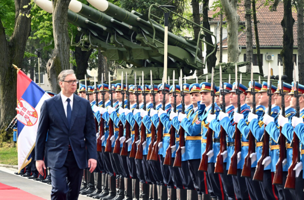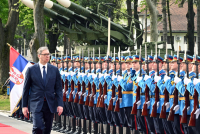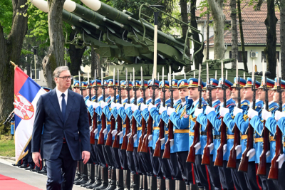 Predsednika Vučića je u kasarni "Banjica 2" dočekao počasni stroj Garde Vojske Srbije.