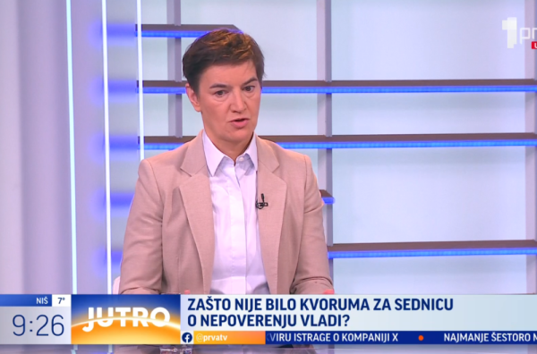 "To je par ekselans politički performans, vreme koje će oni koristiti za svoje priče nema nikakav uticaj na Vladu, nema nikakav benefit za građane. Bukvalno politički igrokaz i politički performans. Ako nemate za kvorum, onda svakako nemate ni za dovoljno glasova da padne vlada", rekla je Brnabić.