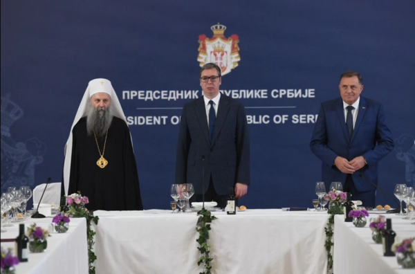 Vučić sa patrijarhom Porfirijem i Dodikom: Zahvalan sam što se bave nametnutom rezolucijom o Srebrenici VIDEO