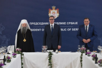 Predsednik Republike Srbije Aleksandar Vučić ugostio je danas na ručku patrijarha srpskog Porfirija, Sveti arhijerejski Sabor SPC i predsednika Republike Srpske Milorada Dodika.