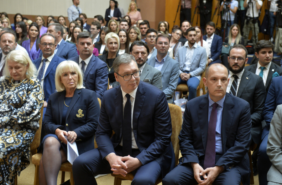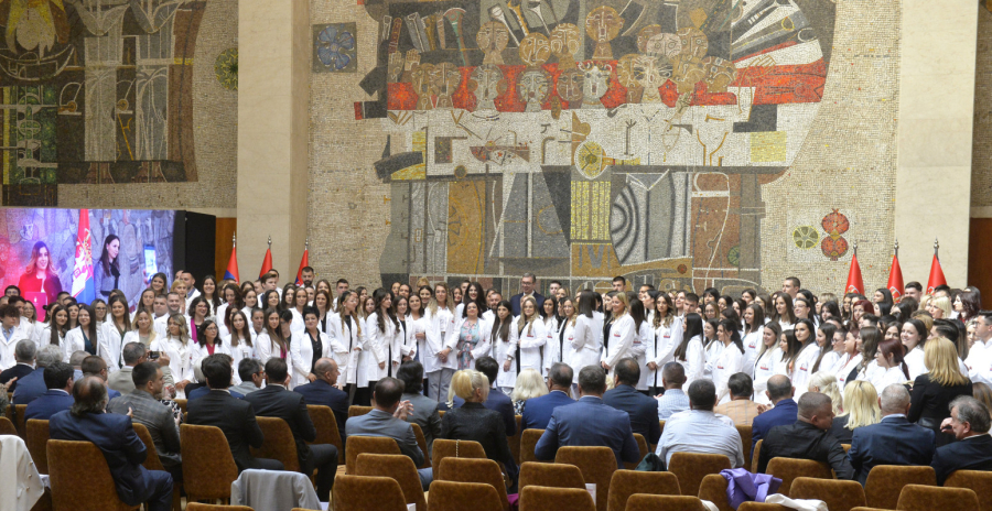 Predsednik Srbije Aleksandar Vučić prisustvovao je ceremoniji uručenja ugovora o radu najboljim diplomcima medicinskih fakulteta i srednjih medicinskih škola u Srbiji.