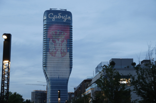Kula Beograd u bojama zastava Srbije i Republike Srpske: "Jedan narod, jedan sabor"