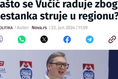 U tome je, sudeći po njima, Vučićeva "krivica", dodaju "Novosti" i prenose naslov teksta objavljenog na portalu Nova S: "Zašto se Vučić raduje zbog nestanka struje u regionu?".