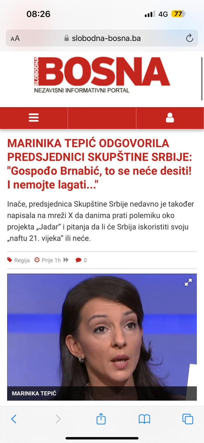Pripadnica opozicije Marinika Tepić, kao i Milojko Pantić, koji su se pokazali kao najveći protivnici investiranja u Srbiju, a takođe i kao pobornici toga da su Srbi genocidan narod, dobijaju najveći medijski prostor u islamističkoj Slobodnoj Bosni.