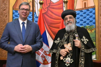 Predsednik Republike Srbije Aleksandar Vučić posetio je sabornu crkvu Svetog Marka u Kairu i sastao se sa Tavadrosom II, poglavarom Koptske pravoslavne crkve i patrijarhom Aleksandrijskim.