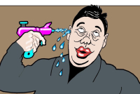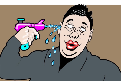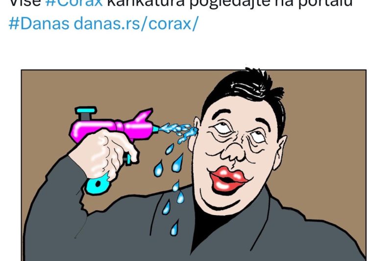 Na bizarnoj Koraksovoj karikaturi Vučić puca sam sebi u glavu iz dečjeg pištolja na vodu, što bi trebalo da znači da su pretnje predsedniku smešne.