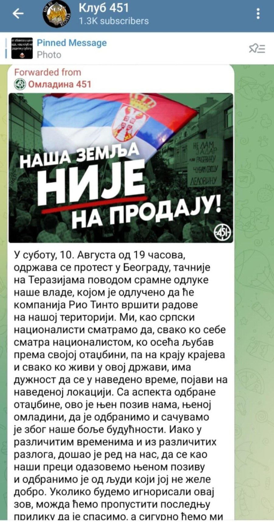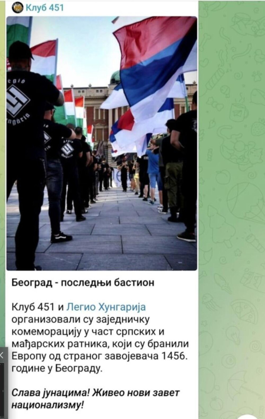 Četiri neonacisticke organizacije iz Srbije: Zentropa, Srbska Akcija, Klub 451 i Zboraška Omladina, povezane s neonacistima iz inostranstva, preko Telegrama i Instagrama pozivaju na politički protest koji u subotu 10. avgusta organizuje opozicija.
