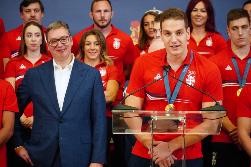 Nikola Jakšić, kapiten vaterpolo reprezentacije Srbije koja je pobedom nad Hrvatskom u finalu osvojila zlatnu medalju na Olimpijskim igrama u Parizu: