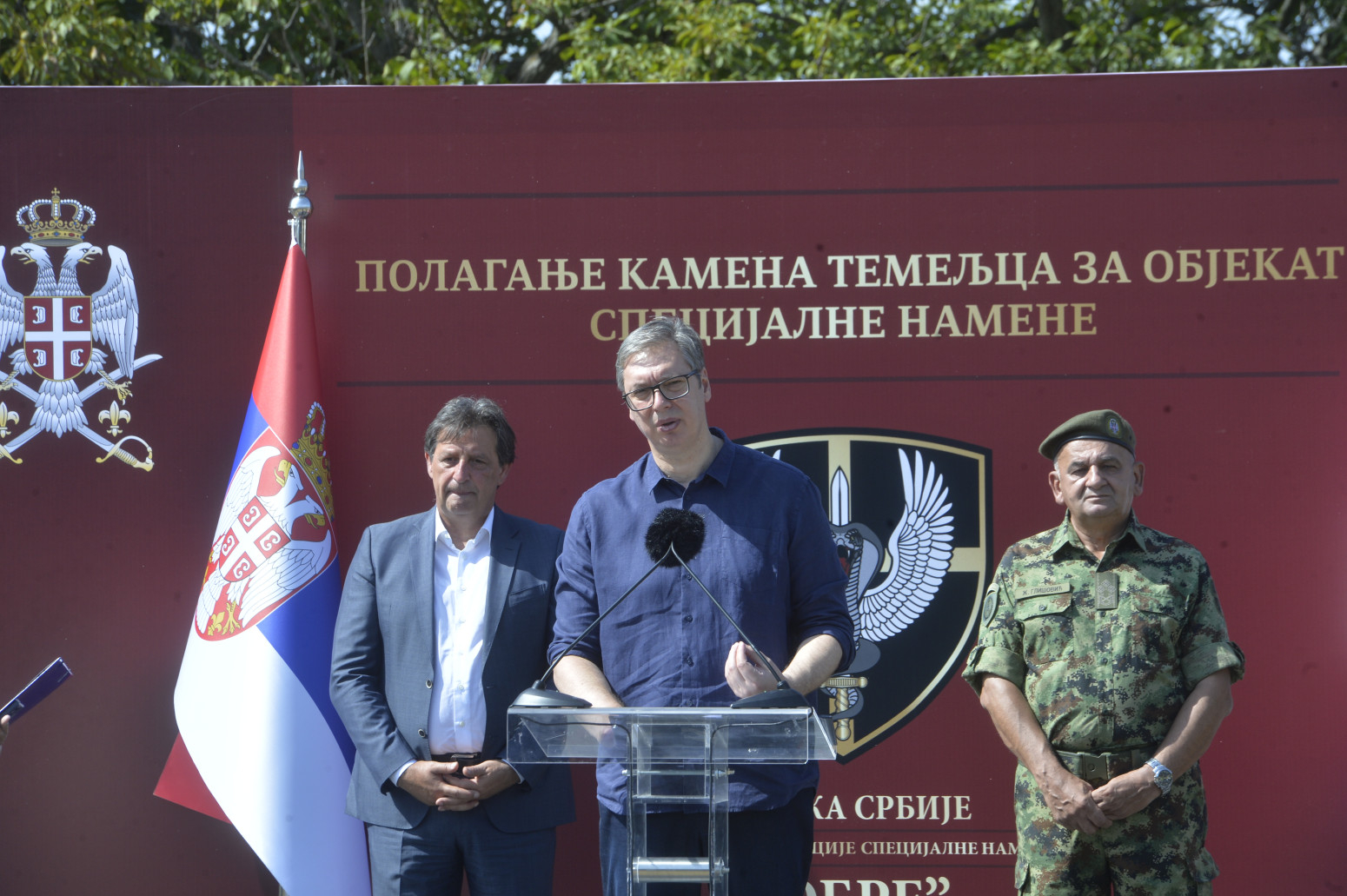 Predsednik Srbije Aleksandar Vučić prisustvovao je polaganju kamena temeljca za izgradnju novog objekta za smeštaj i obuku pripadnika Odreda vojne policije specijalne namene "Kobre".