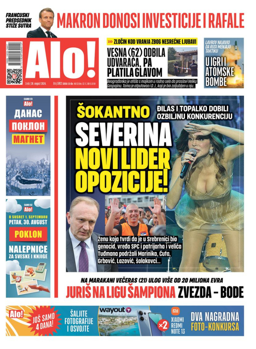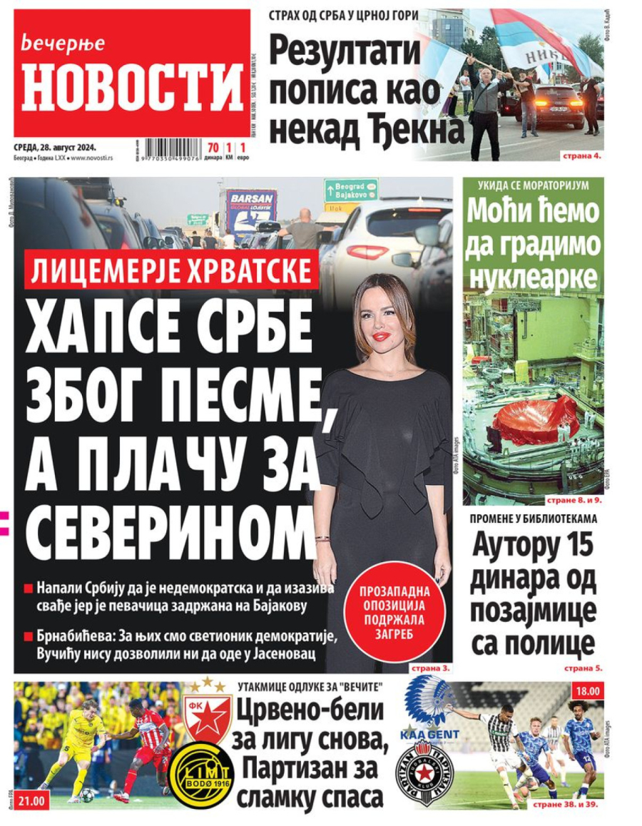 Novine: "Hapse Srbe zbog zbog pesme, a plaču za Severinom"; "Idem da napravim masakr"