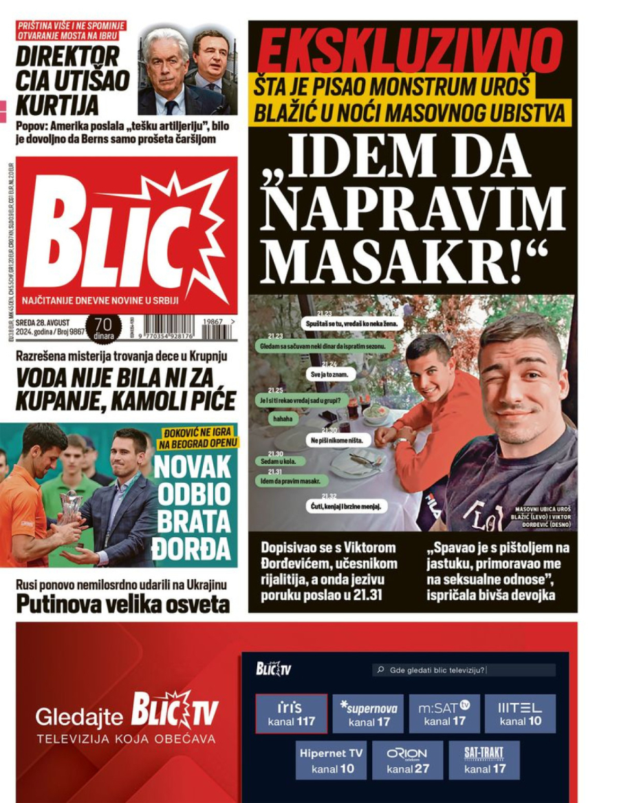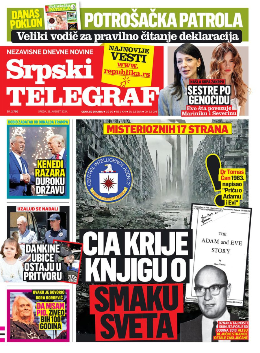 Dnevne novine u Srbiji za sredu, 28. avgust 2024. godine, na naslovnim stranama najavljuju brojne aktuelne društveno-političke teme i donose ekskluzivne priče.
