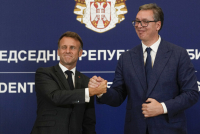 Predsednik Francuske govorio je i o odnosima Beograda i Prišitne i naglasio da je EU zabrinuta zbog nedavnih jednostranih poteza Prištine, koji ne šalju dobar znak.