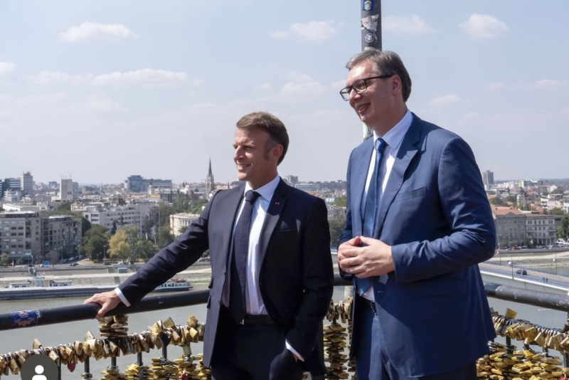 "Dragi Aleksandar, dragi srpski prijatelji, hvala vam na tako toplom dočeku. Značajno smo unapredili odnos između Srbije i Francuske. Nastavićemo dalje.