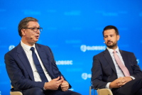 Predsednici Srbije i Crne Gore Aleksandar Vučić i Jakov Milatović, nakratko su imali polemiku o "zajedničkom jeziku" na panelu "Pridruživanje Zapadnog Balkana EU" u Pragu.