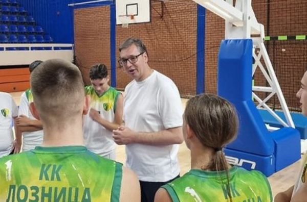 Predsednik Srbije Aleksandar Vučić održao košarkaški trening deci koja treniraju u KK Loznica.