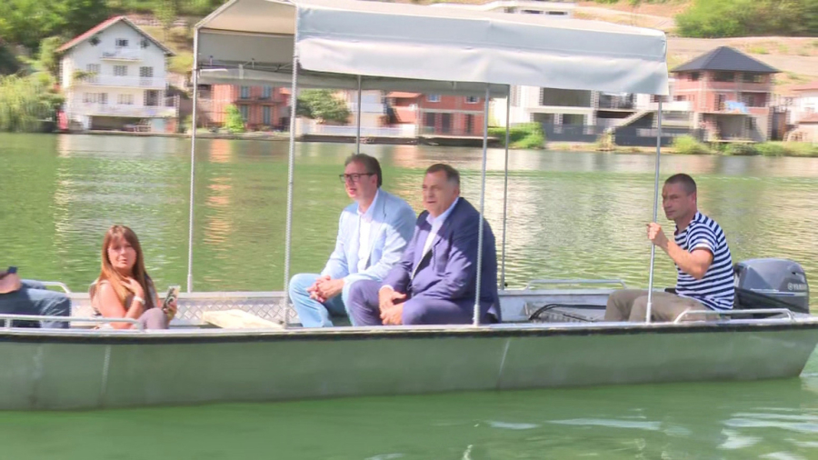 Vučić je stigao na čamcu, zajedno sa Dodikom. Na Zvorničkom jezeru osim ribolovaca, okupio se i veliki broj meštana. Vučića i Dodika dočekao je predsednik opštine Mali Zvornik Zoran Jevtić.
