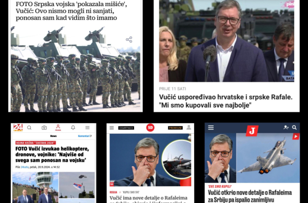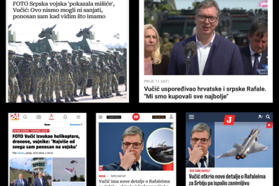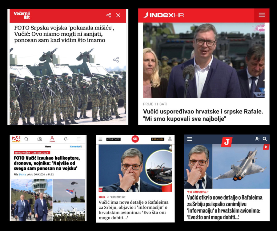 "Večernji list" piše da je "srpska vojska pokazala mišiće", "Indeks" piše o novim avionima koje će Srbija kupiti od Francuske, a vest o vojnoj vežbi u Batajnici preneo je i portal "24 sata".