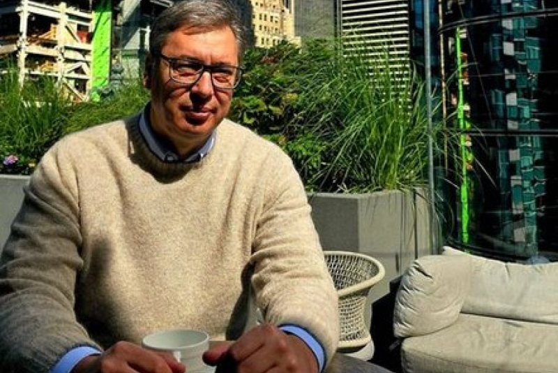 "Jutarnji čaj u Njujorku, sve pokušavajući da pobedim tremu i nervozu zbog velike odgovornosti pred nastupe koje ću imati u UN. Narodu u Srbiji, kao i uvek, mogu da obećam borbu, iskrenu i posvećenu, za naše državne i nacionalne interese. Živela Srbija," napisao je Vučić na Instagramu.