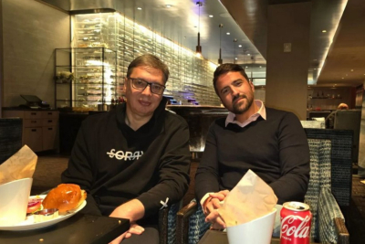 "Na kraju napornog dana, a uoči plenarne sednice Generalne skupštine UN stiglo nam je veliko pojačanje iz Beograda, moj drug i teniska legenda Janko Tipsarević. Osim sto smo sa ovim hamburgerima i krompirima poradili na našem zdravlju, Janko me je naučio kako da smanjim nervozu i izborim se sa tremom pred obraćanje", napisao je.