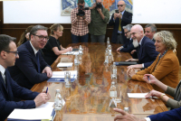 Predsednik Republike Srbije Aleksandar Vučić sastao se sa predsednicom Odbora za spoljnu politiku i odbranu Senata Republike Italije Stefanijom Kraksi.