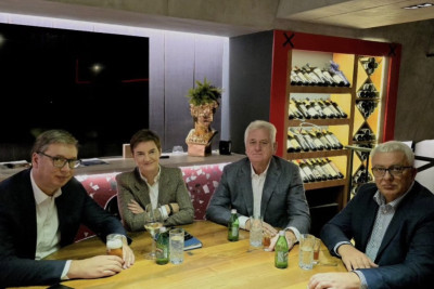 "Srećan što sam u kafanu u Beogradu na vodi uspeo da dovedem troje predsednika - Nikolića, Mandića i Anu. Toma i ja se sećamo osnivanja SNS, zahvalni Ani što nam se naknadno pridružila i srećni što možemo da ugostimo našeg brata i prijatelja iz Crne Gore Andriju Mandića. Ovo što vidite samo poneku rakiju i pivo, ne znači da sam loš domaćin, jer meso kao predjelo, glavno jelo i dezert tek stiže", naveo je Vučić u opisu fotografije.