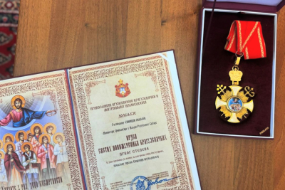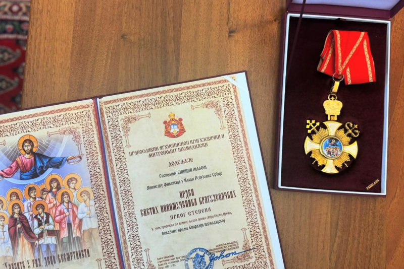 Ministar finansija Siniša Mali dobio je orden od Eparhije šumadijske, odnosno Mitropolita Jovana.