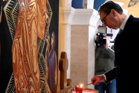 Predsednik Srbije Aleksandar Vučić prisustvovao je danas u Hramu Svetog Save pomenu patrijarhu Irineju.