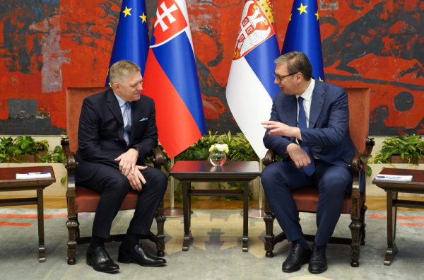 Predsednik Srbije Aleksandar Vučić i premijer Slovačke Robert Fico sastali su se danas u Palati Srbija.