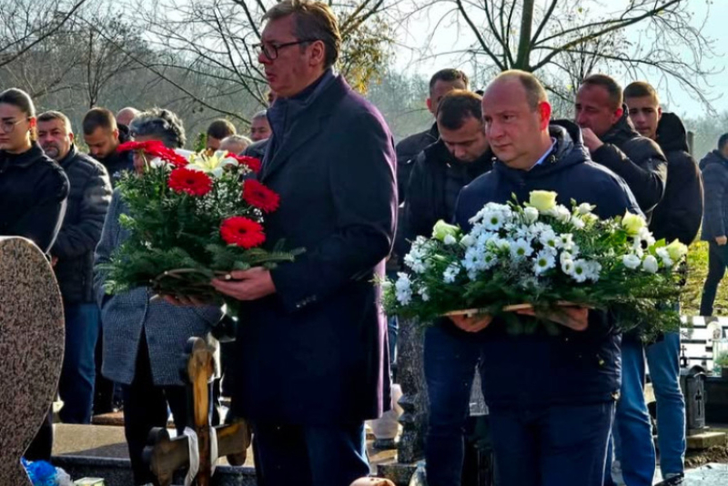 Predsednik Aleksandar Vučić prisustvovao je pomenu sedamnaestogodišnjeg Nemanje Komara, koji je stradao u tragediji koja se dogodila 1. novembra. On je posetio i porodicu stradalog Đure Švonje i izrazio saučešće.